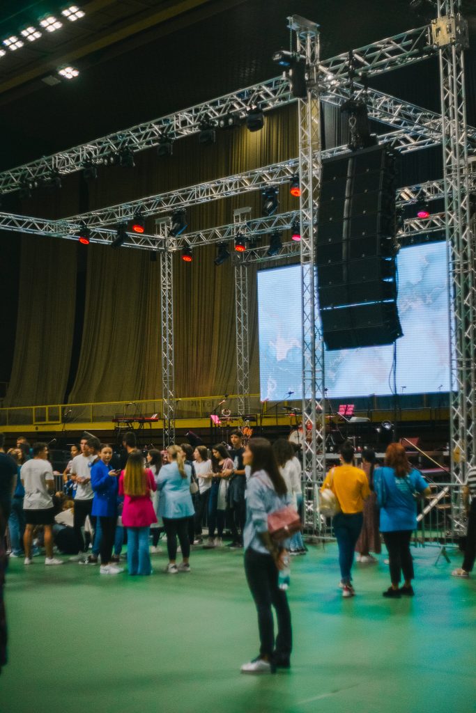 Dvorana se postojano punila od 18.30, a kako se primicalo vrijeme početka večeri slavljenja, potočić je posjetitelja rastao u rijeku. Mnogi su nosili majice ili boce, ‘merch’ Božje pobjede koji su kupili prije ulaska. Bilo je starih, mladih i najmladjih, obitelji s djecom, grupa prijatelja, fratara, časnih sestara te raznih zajednica iz svih krajeva Hrvatske. Tako su različiti bili ti ljudi koji su napunjali sjedala na tribinama i prostor u parteru pa ipak svi su tu bili s istim osmjehom na licu i s rastućim uzbuđenjem zbog onoga što ima početi.